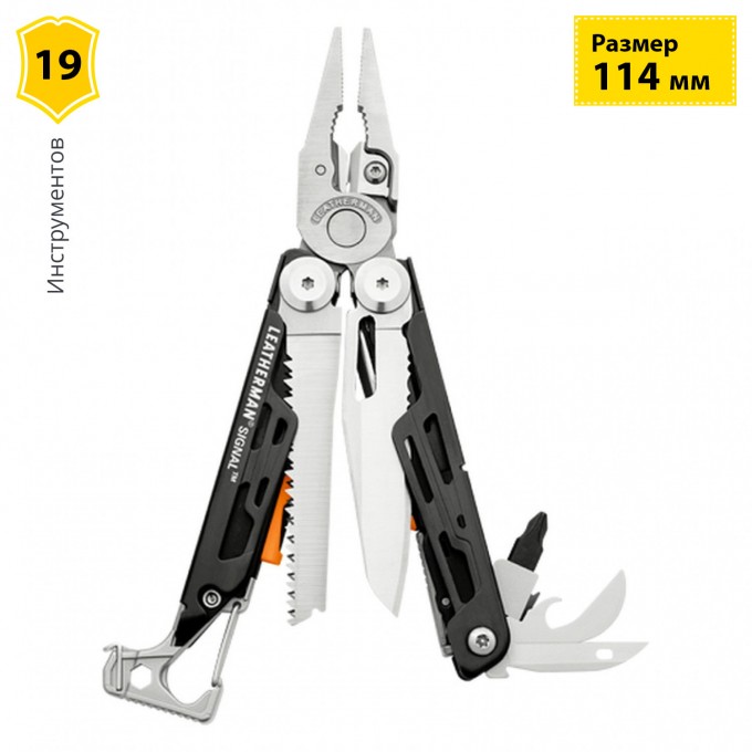 Мультитул Leatherman Signal 832265 – универсальный инструмент для аутдора, что означает для ценителей пикников, путешествий и пеших походов. Производители же позиционировали продукт как надежный предмет для возможного выживания в экстремальных условиях. Главная особенность – наличие съемного огнива и свистка.